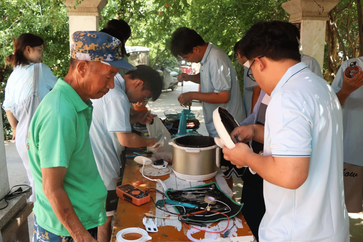 “防范诈骗,共创平安”反诈宣传团针对电信诈骗、网络诈骗等常见类型,剖析诈骗手段,筑牢群众防诈防线。“分而治之,绿以新生”环保思想宣传团通过发放手册、现场演示,科普节能减排技巧与垃圾分类标准,引导绿色低碳生活习惯。“数智科普利民生,电脑维修助便捷”计科帮扶团搭建临时服务点,免费排查维修手机、电脑等电子设备,解决群众实际难题。