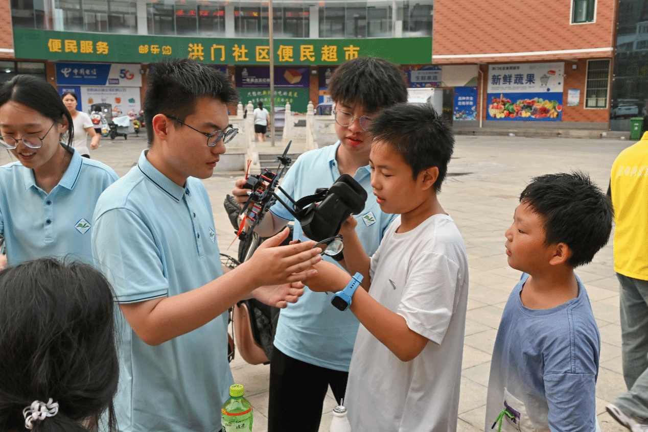 “智慧乡村,机电赋能”学科特色实践团队面向社区儿童开展无人机与单片机科普:通过互动体验激发青少年科技兴趣、培养创新思维;展示无人机在现代农业中的应用,为乡村振兴提供新思路;同步开设“大学生—居民科技对话角”,双向交流、资源共享,共建科普社区新样板。