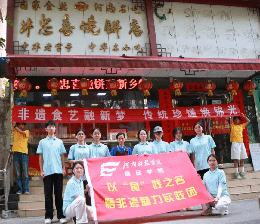 与此同时,“传承非遗美食”团队走进牛忠喜烧饼、臧营桥烧鸡、濮阳壮馍等地方特色门店。队员们不仅向店主学习传统工艺,更在门店周边进行宣传,详细讲解非遗食品的历史渊源、制作技艺及食品安全知识,让更多人感受非遗美食的文化魅力与当代价值。