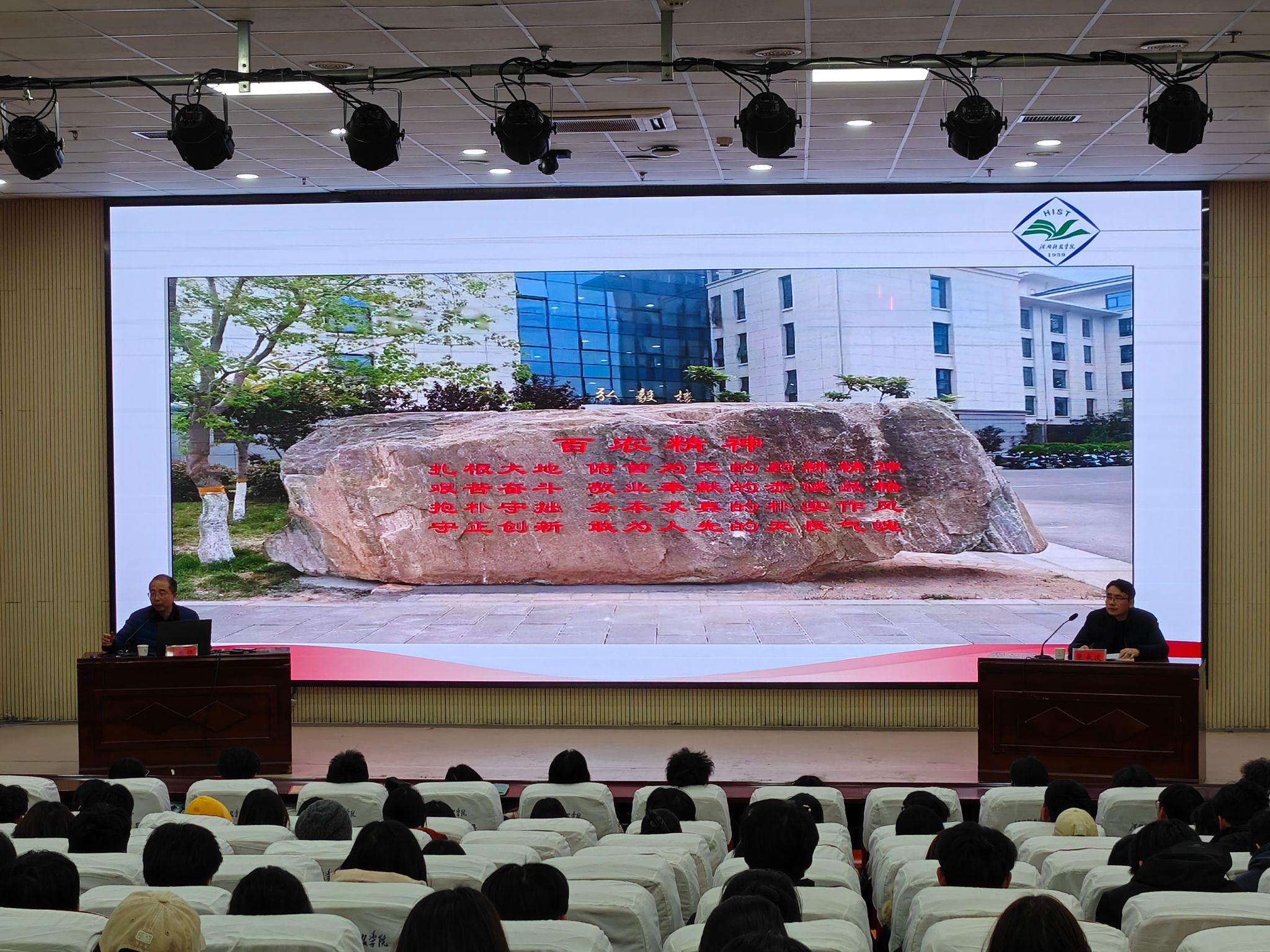 翟居怀从追溯“百农精神”之根基、凝练“百农精神”之过程、领悟“百农精神”之内涵、传承“百农精神”之行动四个方面,结合宝贵的校史资料和典型人物事迹,向同学们介绍了“百农精神”的起源和发展历程,剖析了“百农精神”的深刻内涵,勉励同学们践行躬耕精神、涵养赤诚品格、锻炼朴实作风、彰显无畏气魄,积极做“百农精神”的传承者。