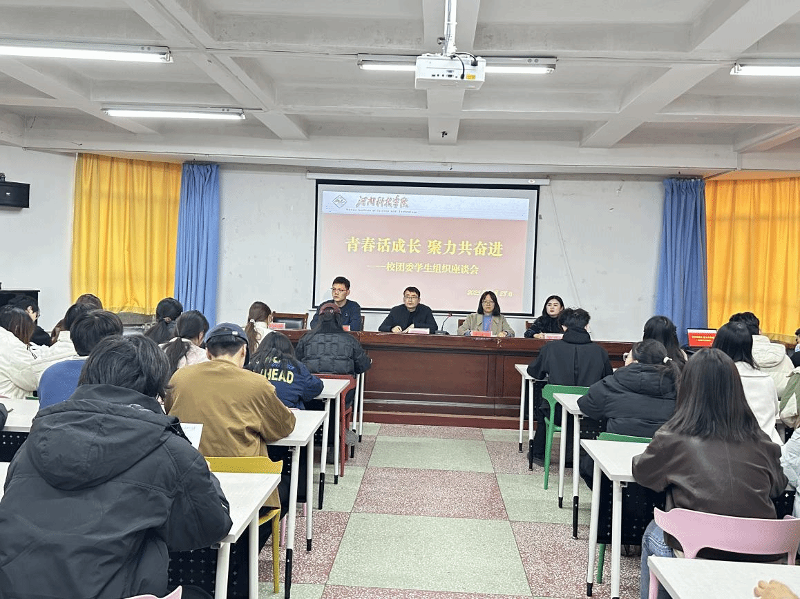 11月28日下午,校团委在实验楼A200会议室召开以“青春话成长,聚力共奋进”为主题学生组织交流座谈会,校团委全体工作人员、校学生会、青年志愿者联合会、学生社团联合会、大学生新媒体中心、兼职学生团干部等学生组织代表参加会议。