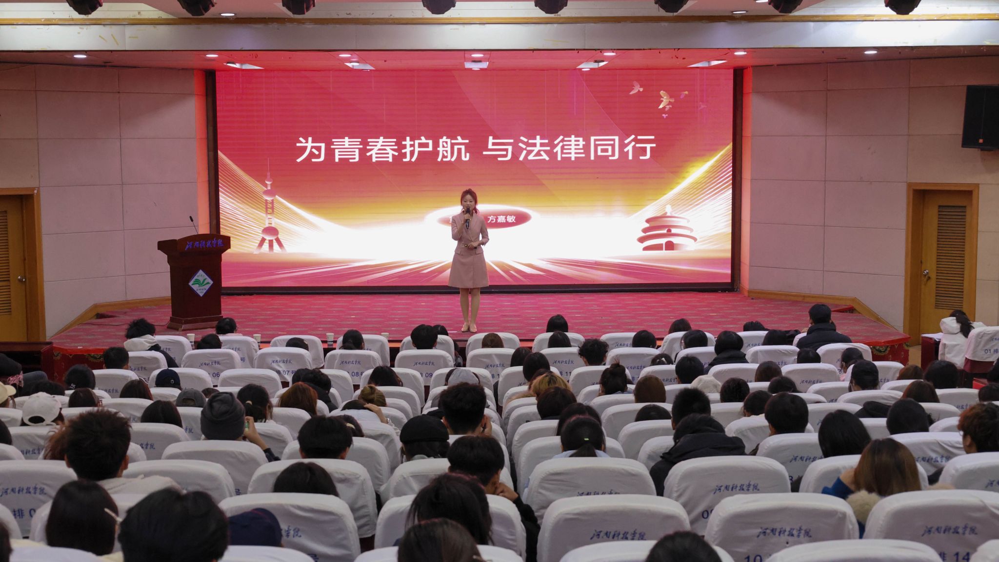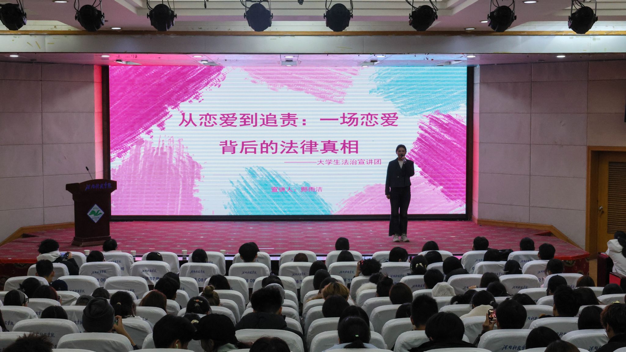 12月11日晚,我校在图教201会议室举办法制专题培训会,特别邀请校大学生法治宣讲团六名宣讲员开展法治宣讲,2025年“青马工程”培训班学员、2025级团支书等200余人参加会议。